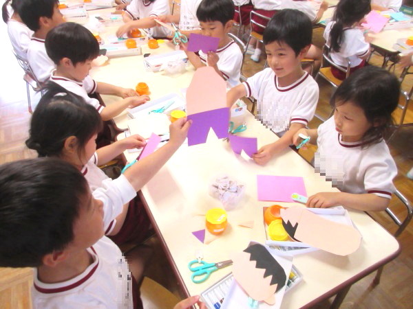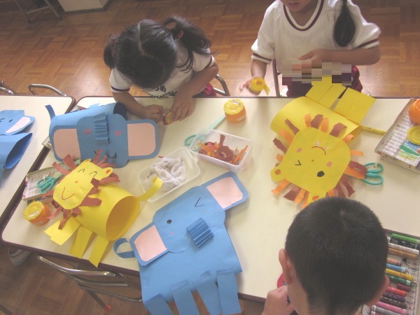 年長組は、紙製作「動物サーカス」をつくりました★