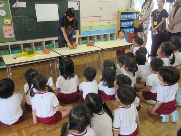 保育の時間になると、「すいかがあるー!」と大喜びの子どもたち☆