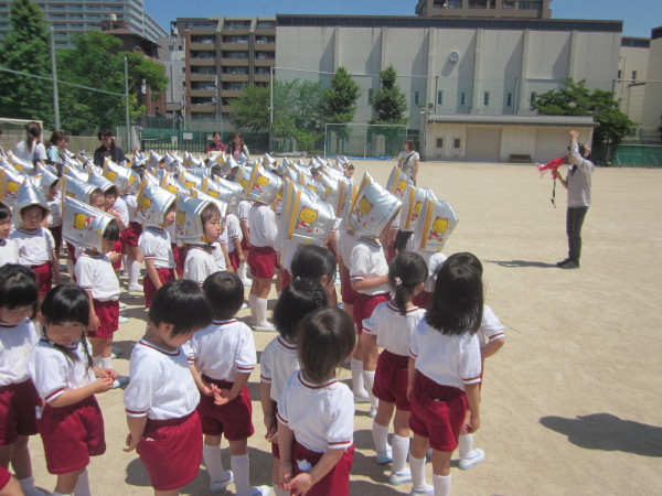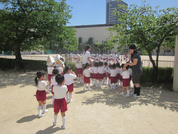 バスに乗る前に園庭でお祈りをして、園長先生のお話を聞き出発!!