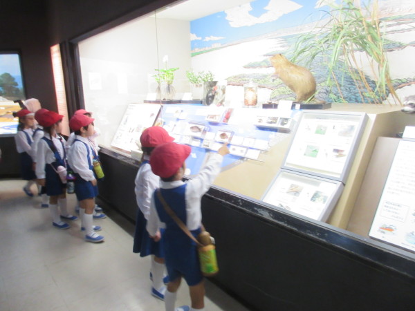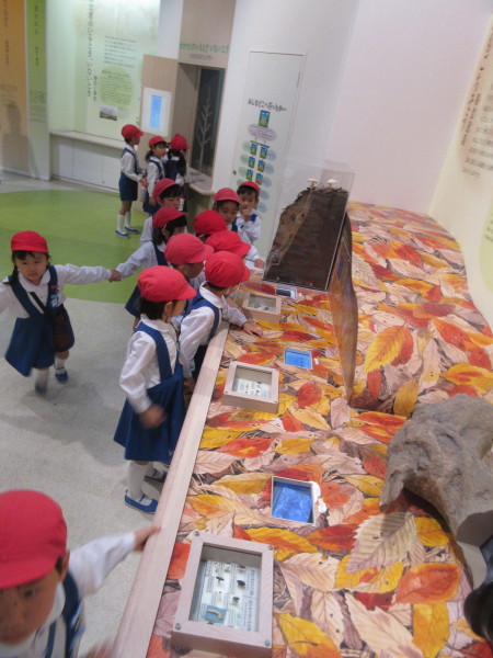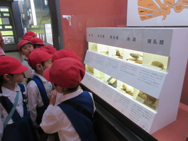 ここにもクジラやサルなど沢山展示がされていて、子ども達も「さるがひとになるんだよ〜」と友達同士話をしながら見ていました。