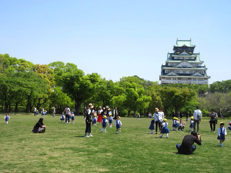 年少組は、西の丸庭園前に集合、年長組、年中組はお家の人と一緒に幼稚園を出発しました。
