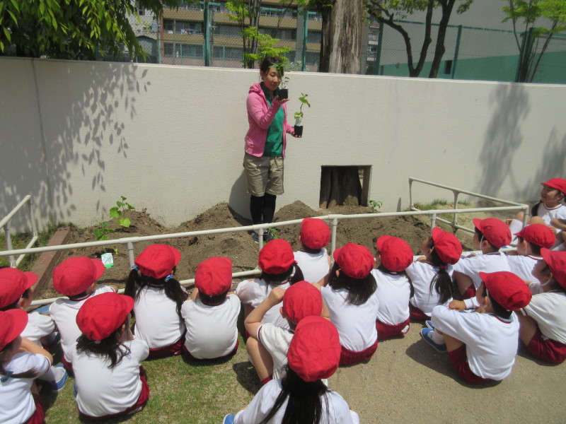年中組は、“茄子”と“かぼちゃ”を植えました。