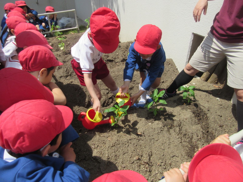 「おおきくなーれ、おおきくなーれ」という子どもたちの声が、園庭に響いていました(^o^)丿