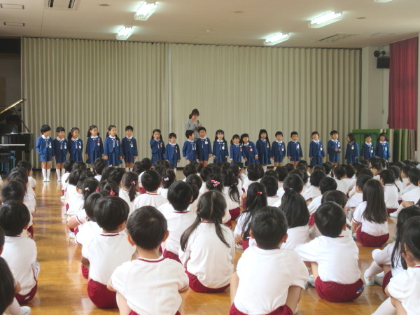最初に、4月生まれのお友達が前に並び、一人ずつ紹介していきます☆