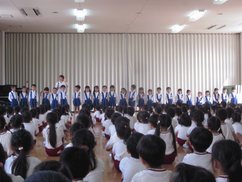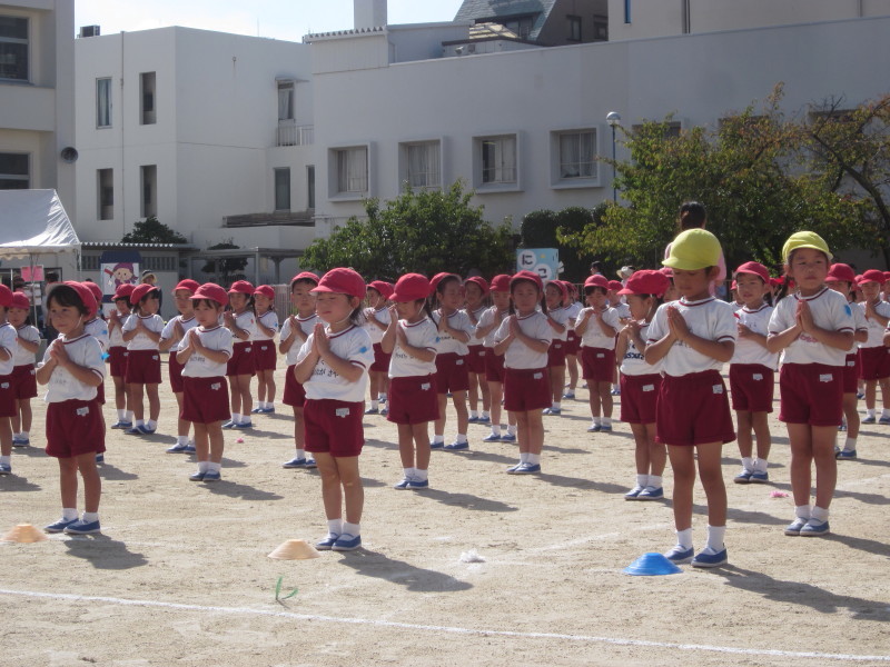 年少組閉会式では、今日一日元気いっぱい運動会を過ごせた事に感謝をしてお祈りをしたり、園長先生からお話を頂きました!