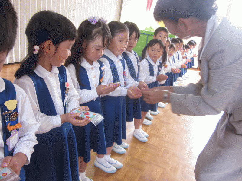 園長先生から、「がんばったね!」の言葉とともに、プレゼントをいただいた子どもたち。