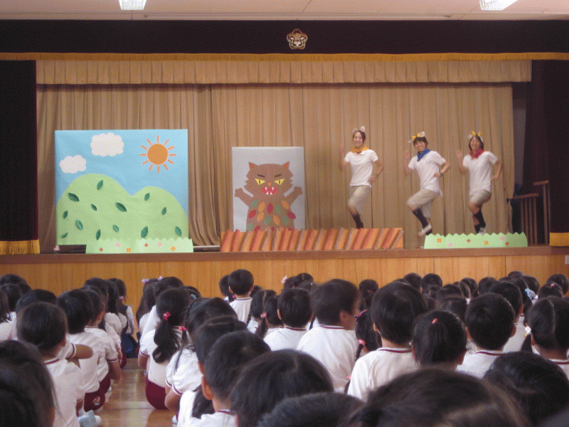 三匹のヤギたちが戦う場面では、子どもたちも一緒になって応援していました☆