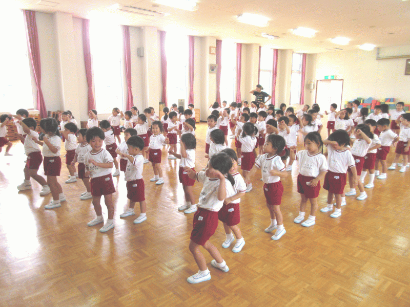 各クラスごとに整列をして、汗かき親子体操をしました!