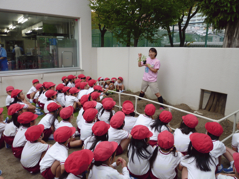 また、園庭にある木の葉も、緑色からだんだんと赤や黄色に変化し、