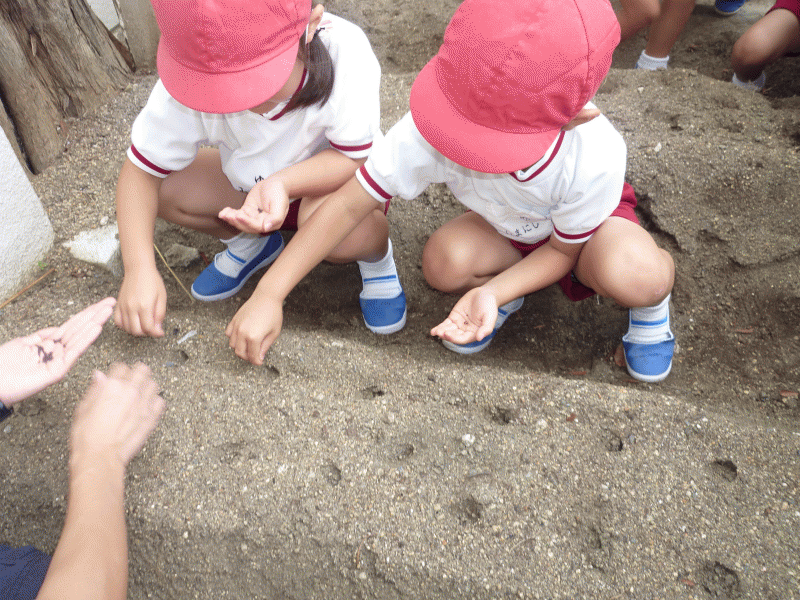 小さなラディッシュの種を大切そうに持つ子ども達(^^)