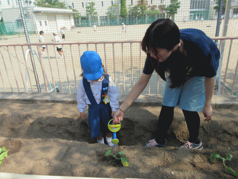 年少組はブロッコリー、白菜、ラディッシュを植えました!!