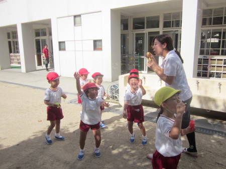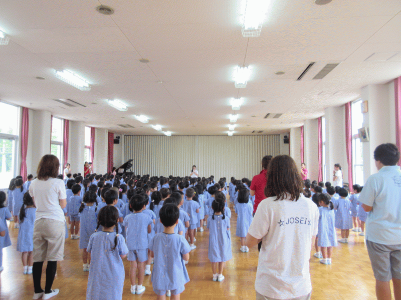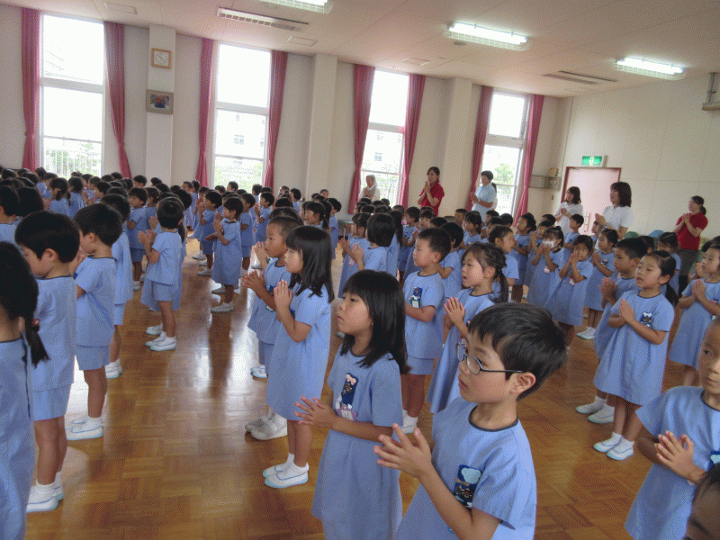 天気の良い青空の下、幼稚園では2学期の始業式が