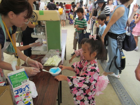 わたがしやたこせん、ジュース、カキ氷のコーナーがあり、