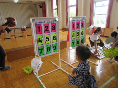 遊戯室では、ストライクナインや輪投げ!