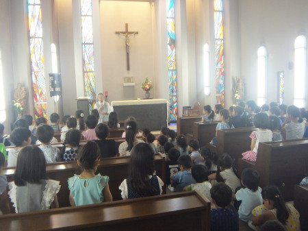 みんな幼稚園のときを思い出して、聖歌をうたってお祈りをお捧げしました。