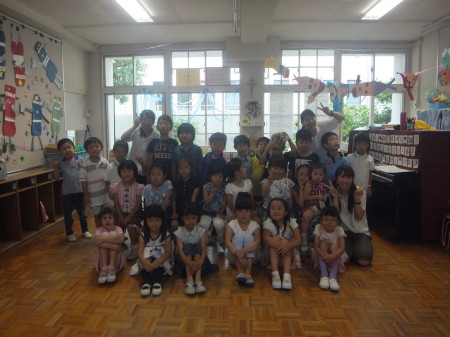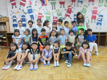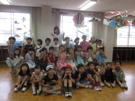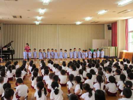7月のお誕生日のお友達が前に並び、みんなで名前を呼び紹介をしました。