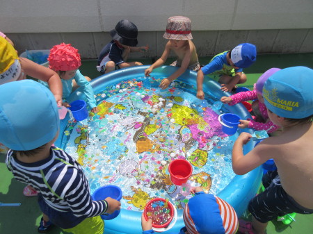 水遊びの時と同じようにおままごとをしたり、金魚すくいをしたり