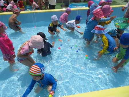 最後には、プールに散らばったスーパーボール拾いをしました(^o^)