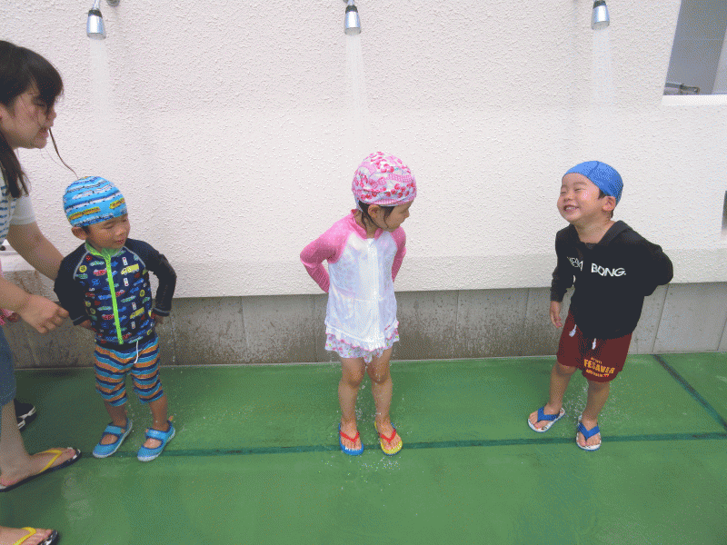 冷たい水を浴びながら、楽しむ子ども達の姿が見られました(*^^*)