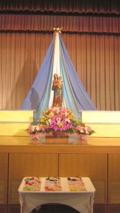 講堂に飾られたマリア様が、あたたかい眼差しで見守ってくださっていました。