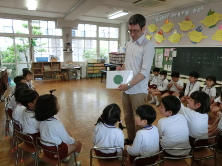 その後は色々な形の単語を教えてもらい、みんなで『circle』『square』『triangle』など声に出して、