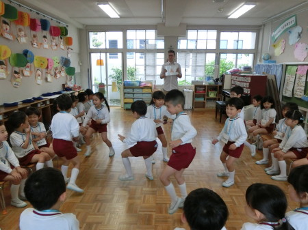 子どもたちが取り組んでいる歌や、リズム遊びをしたり、