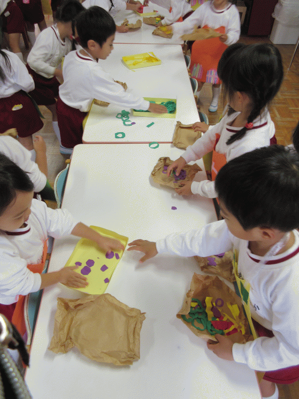 給食のあとも子ども達から、「リースの続きがしたい!」との声(^O^)