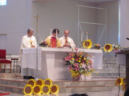 その後、ドン・ボスコを象徴するヒマワリの花がささげられ、聖堂が一段と華やかになりました。