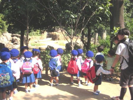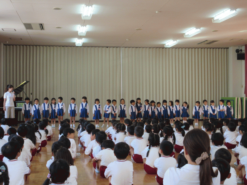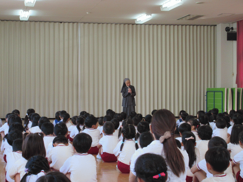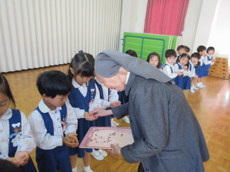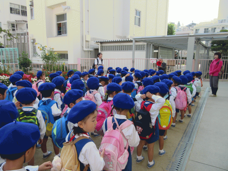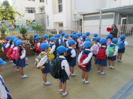 朝、お祈りをしてから園長先生のお話を頂き、「いってきまーす!」