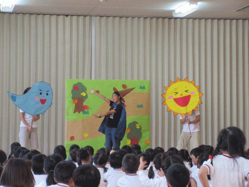 冷たい北風とぽかぽか太陽、心優しい旅人、それぞれの良さに気づくという温かい物語を楽しんで見ていた子ども達でした。