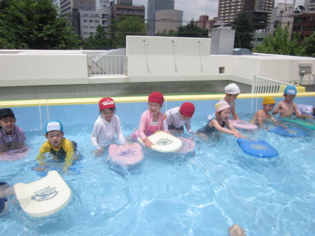 プールのある屋上に上がると、「やったぁ♪」と盛り上がる子ども達!