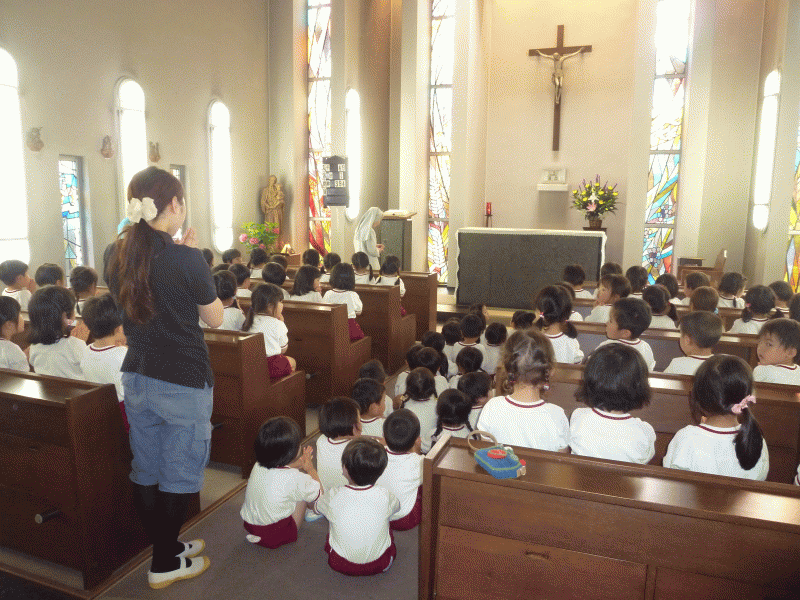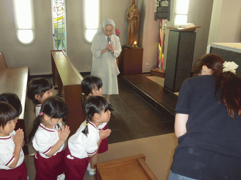 神様に綺麗なお声で聖歌をお捧げしてから、お心をこめてお祈りをしました。