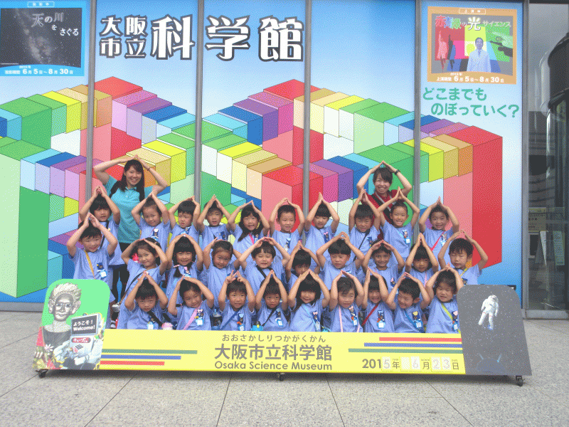 科学館に着くと、まずは記念写真撮影(*^_^*)「はい、チーズ!!」