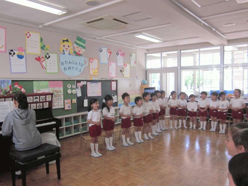 「Welcome to school today〜♪」と楽しくお歌をうたいます♪