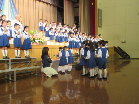 その後、各学年の代表の子どもたちが、「徳の花」をお捧げします。