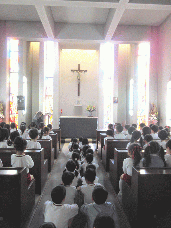 みんなと一緒にお祈りをして、園長先生のお話を上手に座って聞いていた子どもたちです。