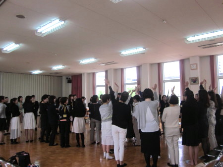 始めは、子どもたちが取り組んでいるリズム遊びに挑戦です。