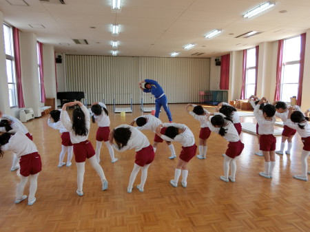 「1,2,3,4・・・」の声に合わせて、しっかり体を伸ばしたり、腕をまわしたりして準備万端です。