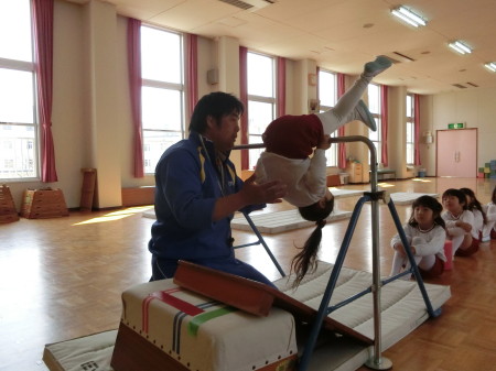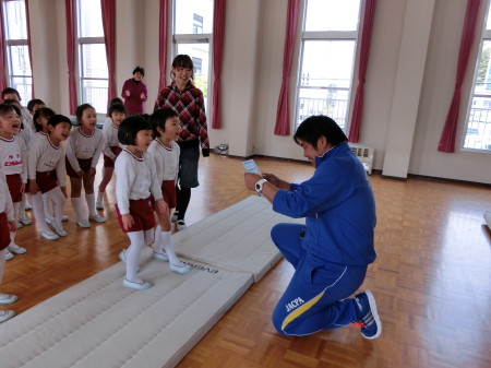 幼稚園での、最後の指導の日となった下津佐先生。