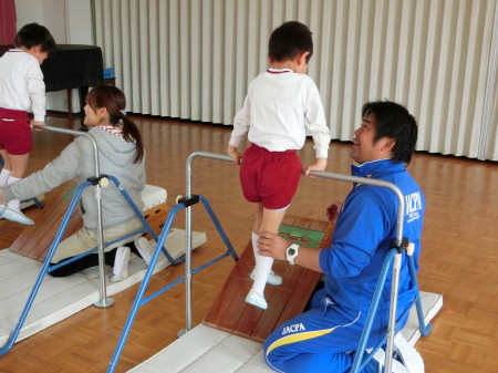 ロイター板の坂を上がるのは、少し難しいようでしたが、