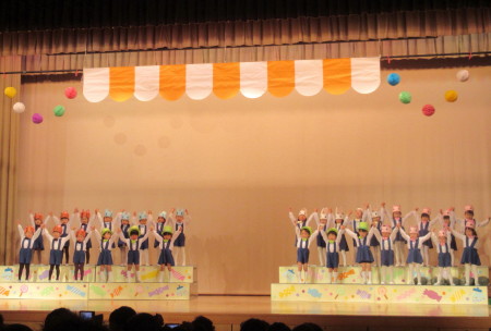 年少組は、初めての発表会でオペレッタをしました。とても可愛いダンスを見せてくれました。