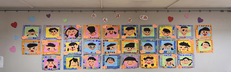 年少組の3月壁面は、「自分の顔」です!
