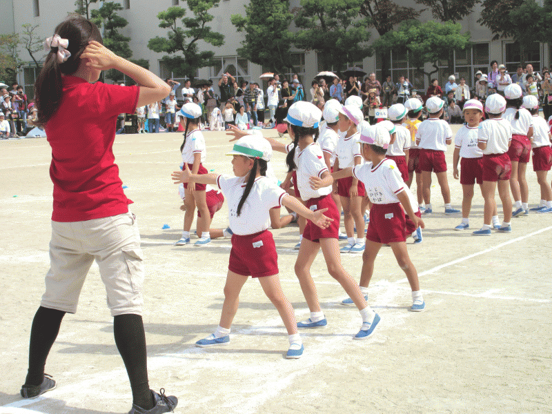 今から始まる競技で、怪我をしないように、元気いっぱいに身体を動かせるように…と“キッズ体操”をして体をほぐしました!