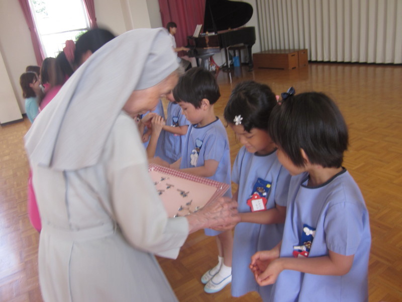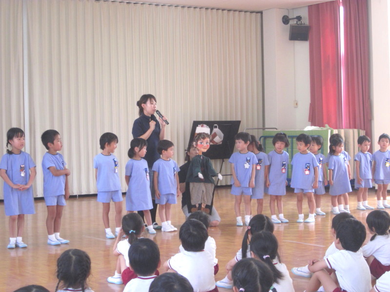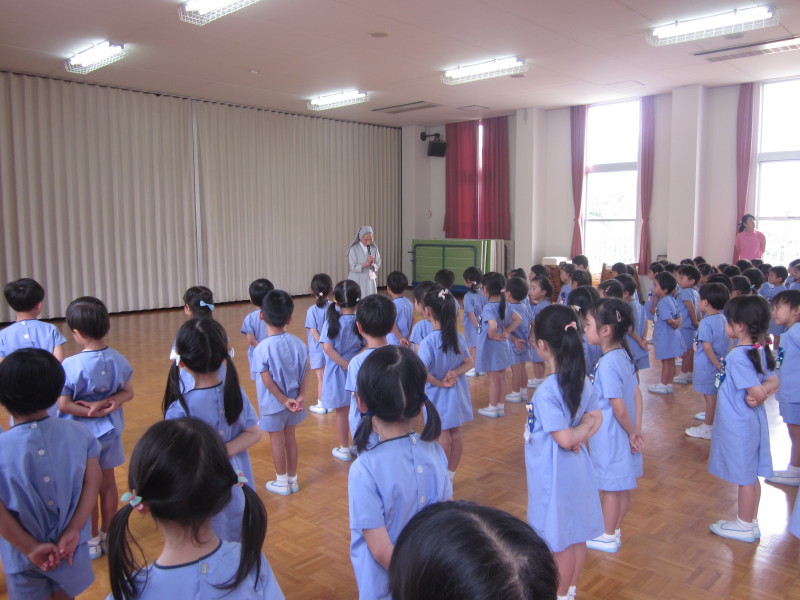 園長先生のお話では、『周りにいる人たちにありがとうの気持ちを持って関わり、夏休みが終わり、次に幼稚園に来る時には、さらにお兄さんお姉さんになっていますように…』とお話を頂きました。