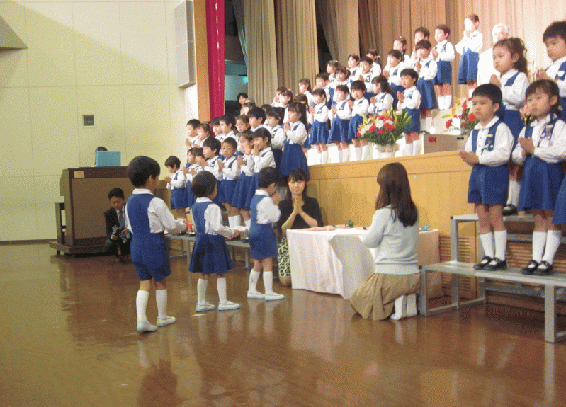 その後は、各学年の代表の子どもたちが、クラスのみんなの「徳の花」を祭壇にお捧げしました。
