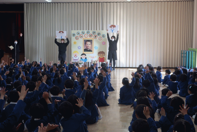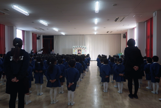 その後、園長先生から、「世界中にドン・ボスコが作った学校があります」「優しいお心でお友だちと過ごしましょう」というお話をいただきました。