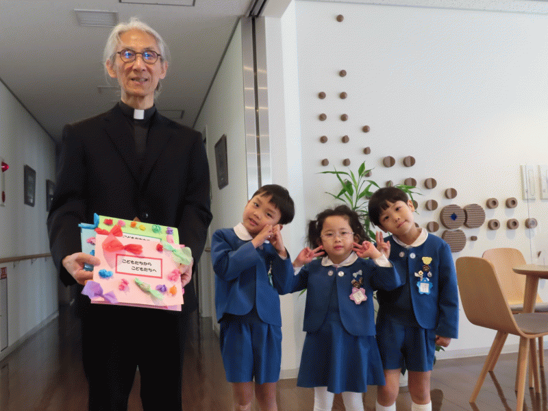そして、子どもたちから「困っている人たちに届けてください」と伝え、献金をお渡しすると、神父様が笑顔で受け取ってくださいました☆
