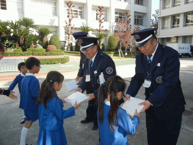毎日、みんなが安心して幼稚園に通えるように、門の前で安全を守って下さる守衛さん。