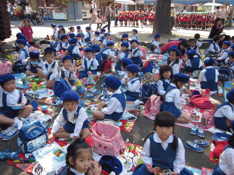 シートを敷いて、おいしいお弁当とおやつをお友達と一緒に