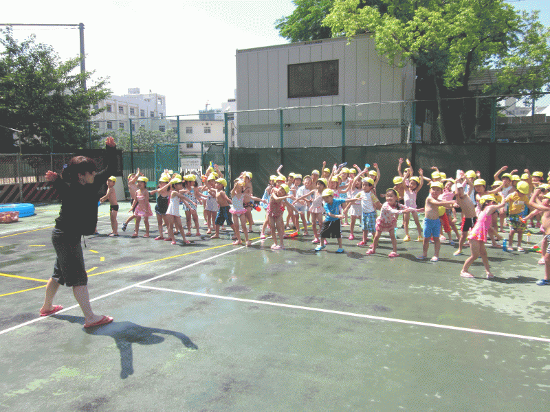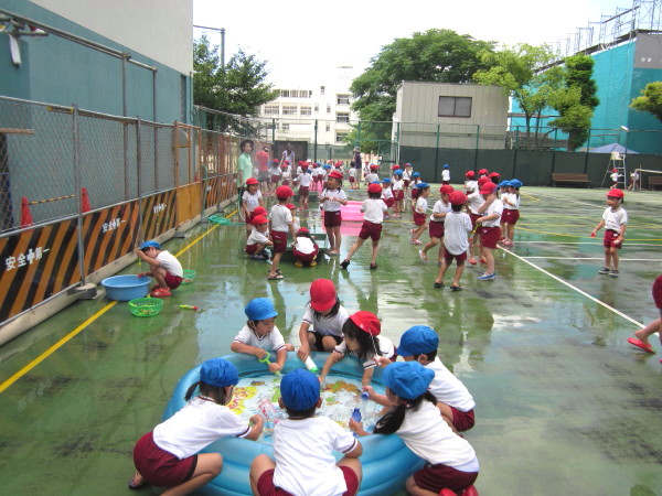 本日、最後の水遊びを年長組で思い切り楽しみました(*^_^*)